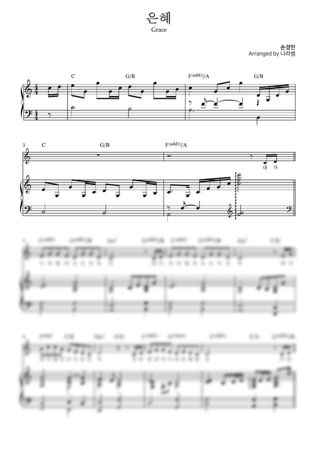 손경민 - 은혜 | C key 피아노 반주 악보(3단) by 나라쌤