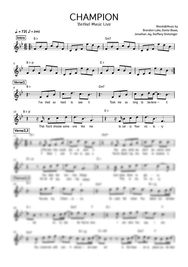 베델뮤직Bethel Music - 챔피언Champion(리드시트 G/A/Bb/C키)