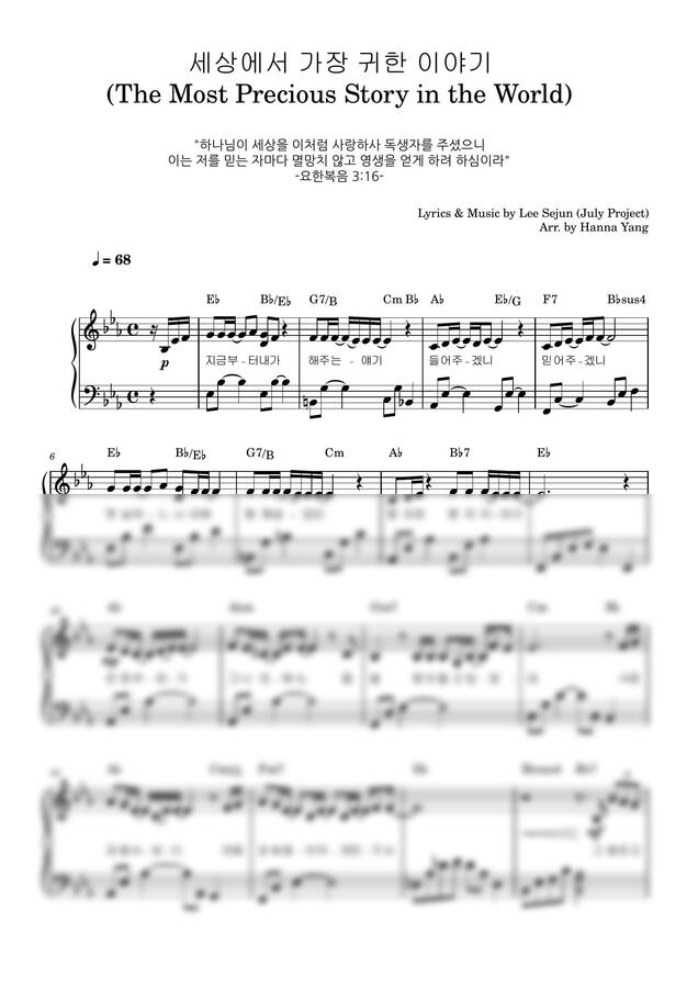세상에서 가장 귀한 이야기ㅣThe Most Precious Story in the Worldㅣ피아노 악보 (어린이영상버전)(Key:Eb)(전조있음)