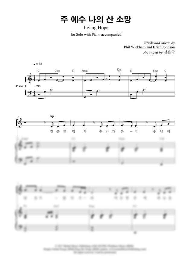 주 예수 나의 산 소망 Living Hope 솔로 보컬 or 악기 + 피아노 반주 악보입니다.