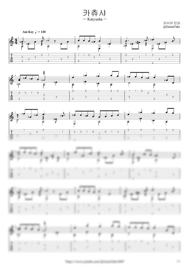 Am Key / 2p / 1단(솔로) / 5선(Staff) / 타브(TAB) / 운지(Fingering)