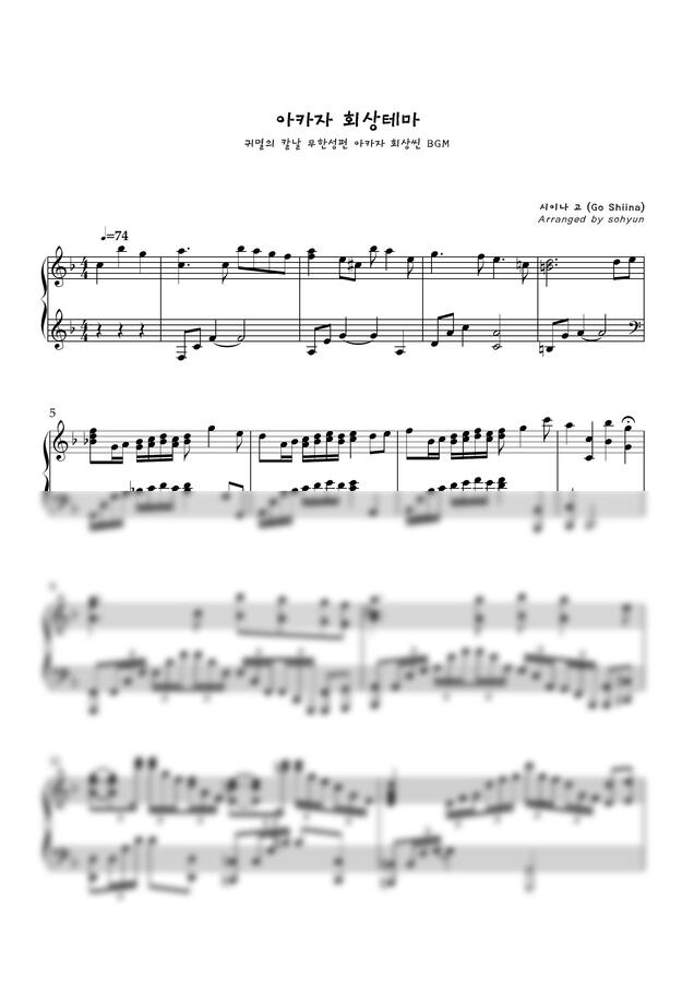 아카자 회상 장면에 사용된 배경 음악을 피아노 솔로로 편곡한 비공식 BGM 악보입니다.
