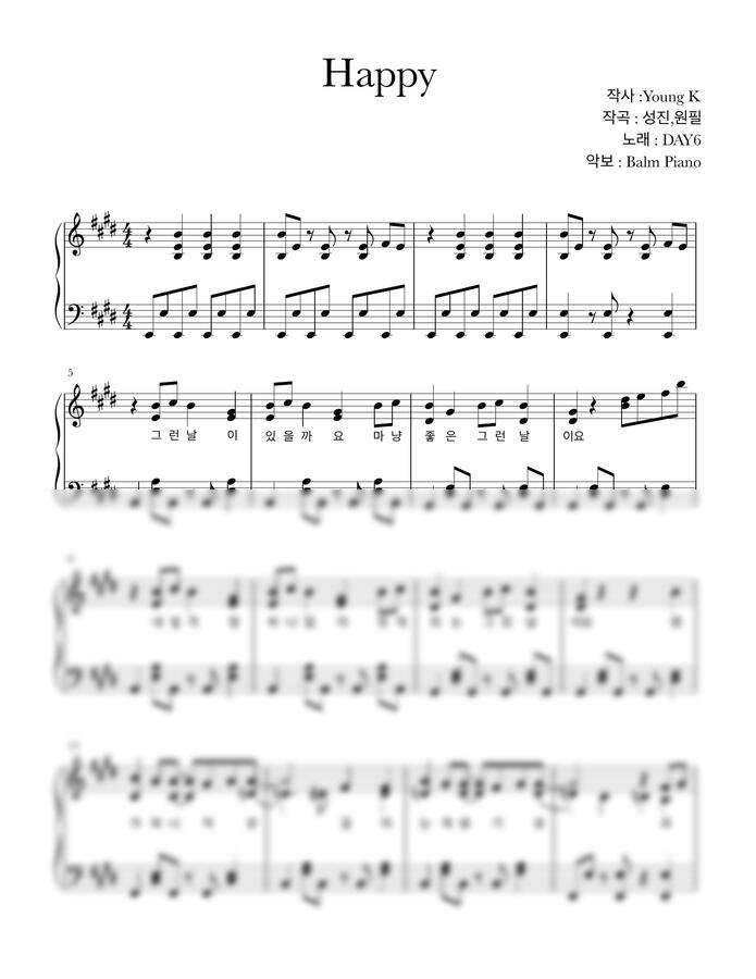 오랜기간 사랑받고 있는 데이식스의 해피 악보 가져왔습니다