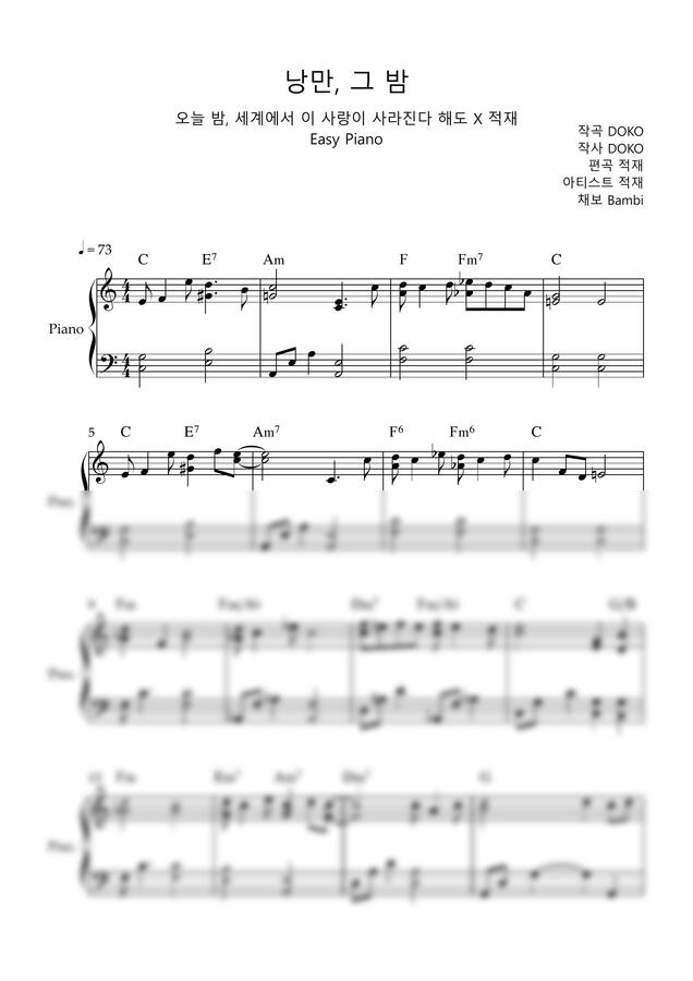 적재 - 낭만, 그 밤 (오늘 밤, 세계에서 이 사랑이 사라진다 해도 X 적재) (Easy Piano) by Bambi