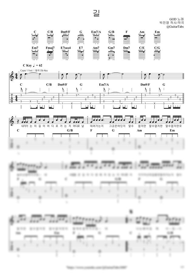 C Key / 3p / 2단(노래+반주) / 5선(Staff) / 타브(TAB) / 가사(Lyrics) / 코드(Chords)