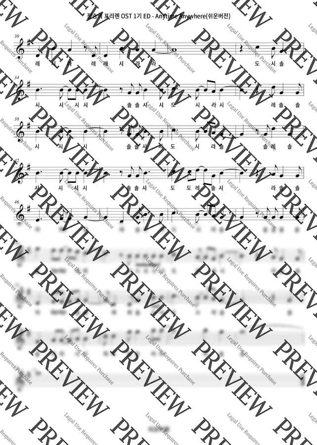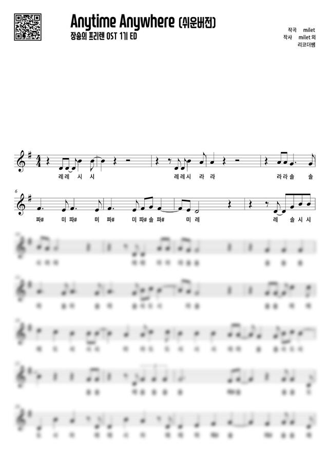 장송의 프리렌 1기 ED - Anytime Anywhere (계이름) by 리코더쌤