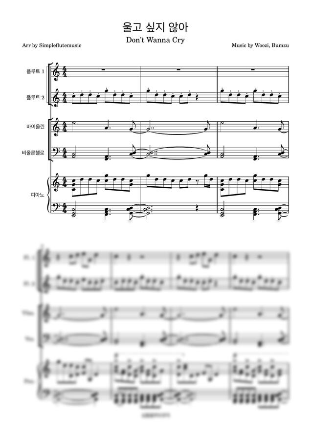 세븐틴 - 울고 싶지 않아-[플루트][바이올린][첼로][성인 취미 연주곡]