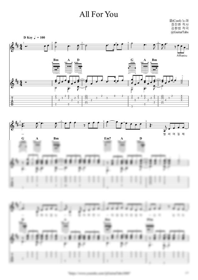 쿨(Cool) - All For You by GuitarTabs