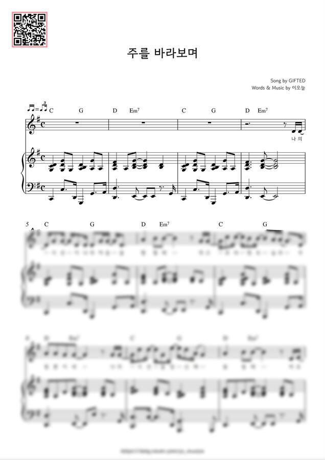 (보시는 페이지 악보는 "피아노 G키" 악보입니다)