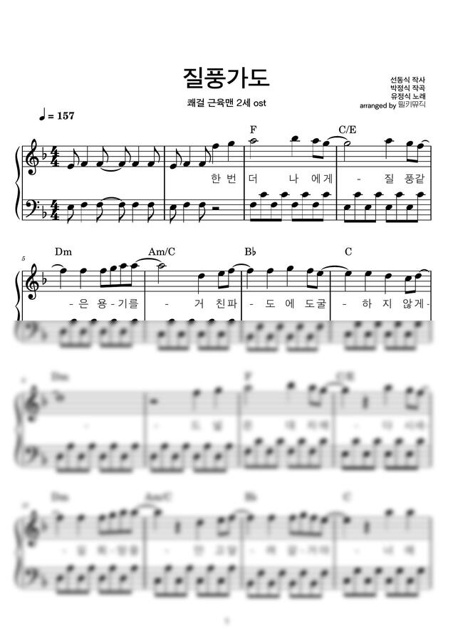 유정석 - 질풍가도 피아노 편곡 악보입니다.원곡의 빠르고 신나는 분위기를 살리되,옥타브 반주가 부담스러운 분들도 연주할 수 있도록왼손을 베이스 + 5음 반주 패턴으로 구성했습니다.템포가 빠르더라도 리듬에만 익숙해지면 연습이 수월한 편입니다.