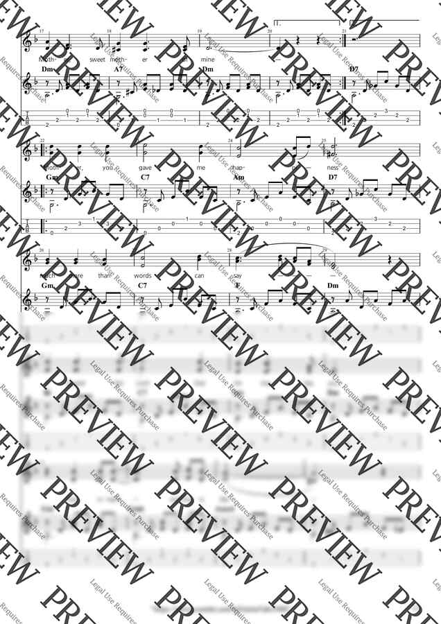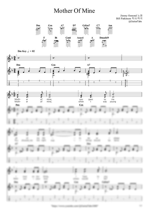 Dm Key / 3p / 2단(노래+반주) / 5선(Staff) / 타브(TAB) / 가사(Lyrics) / 코드(Chords)
