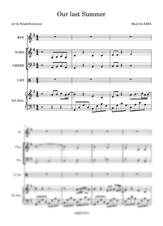 맘마미아 OST - 아우어 라스트 썸머 Our last Summer-[플루트][바이올린][첼로][피아노][성인 취미 연주곡]