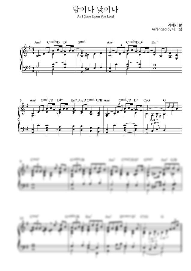 레베카 황 - 밤이나 낮이나 | G key 피아노 연주 악보 by 나라쌤