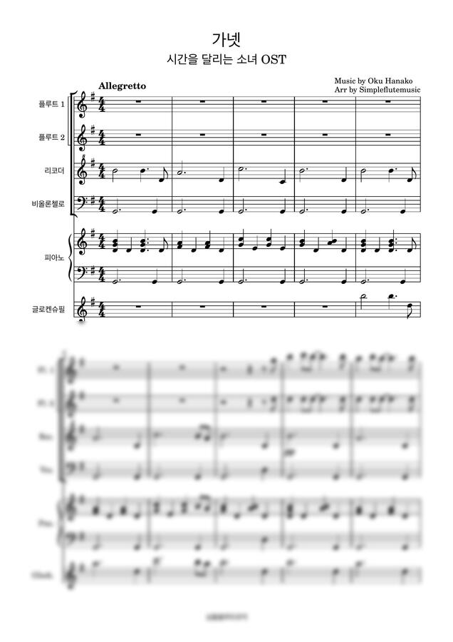 시간을 달리는 소녀 OST - Garnet 가넷-[플루트][리코더][피아노][첼로][쉬운 연주곡]