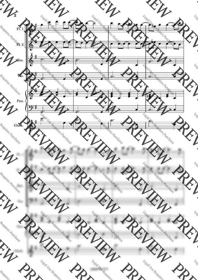 리코더 플루트 첼로 피아노로 구성된 악보입니다.