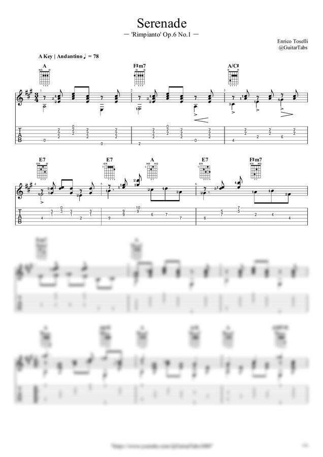 A Key / 4p / 1단(솔로) / 5선(Staff) / 타브(TAB) / 운지(Fingering) / 코드(Chords)