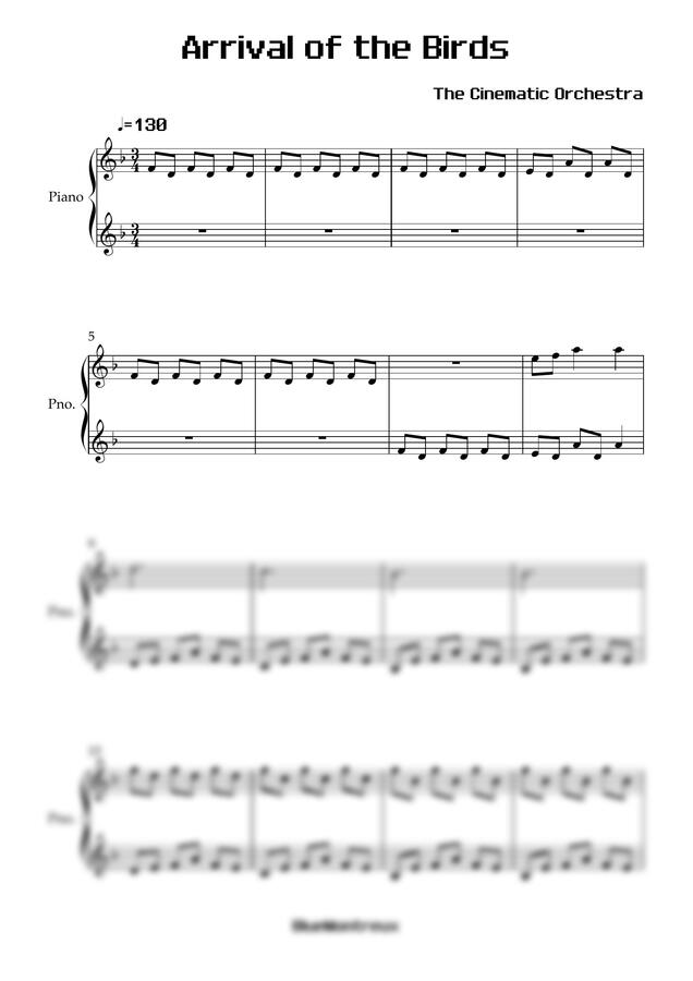 영화 같은 감성을 담은 The Cinematic Orchestra의 〈Arrival of the Birds〉를 피아노 솔로로 편곡한 버전입니다. 원곡의 서정적인 분위기와 점층적인 감정 흐름을 살리면서도 연주자가 자연스럽게 몰입할 수 있도록 보이싱을 정리했습니다. 영상, 연주회, 취미 연주용으로 모두 어울리는 감성 피아노 편곡입니다.