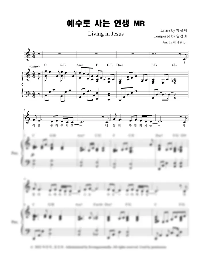 * 위 악보는 구매 후 30일간 이용이 가능합니다*(광수미디어 저작권 협회)