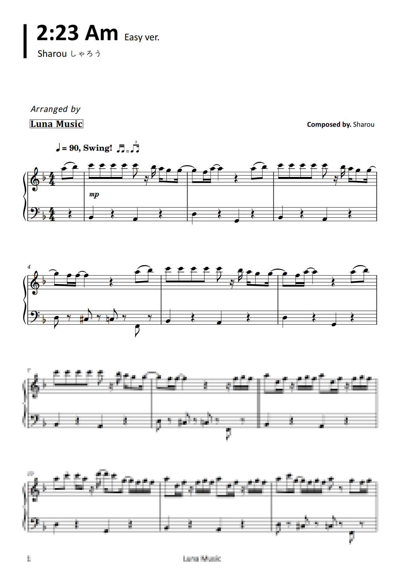 Sharou しゃろう - 2:23 AM [쉬운 원곡 악보]