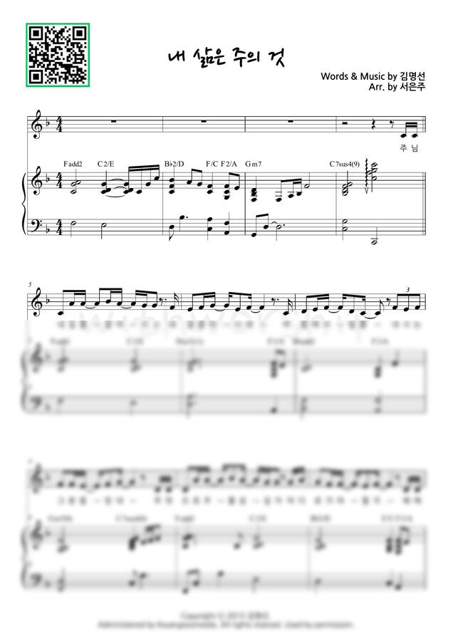 김명선 - 내 삶은 주의 것(주님 내 길을 잘 아시고)F key (피아노 3단) by 서은주