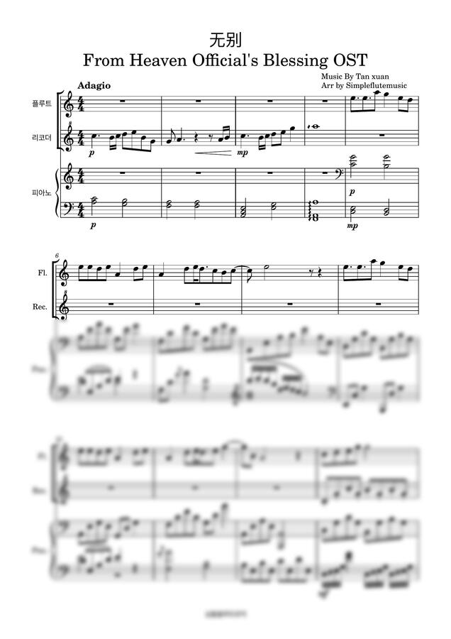 천관사복 OST - 无别 무별-[플루트][피아노][성인취미연주곡]