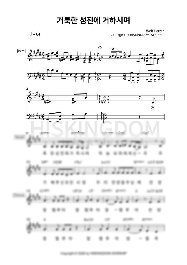 [3-Key 패키지] 거룩한 성전에 거하시며 (남/여/키업 전용, 리드시트) by 히스킹덤워십