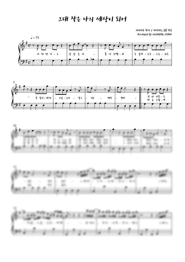 이번 피아노 악보는 카더가든 "그대 작은 나의 세상이 되어"의 매우 쉬운 악보입니다.