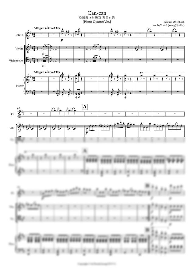 자크 오펜바흐 - 캉캉 (피아노4중주 (플바첼피) 버) by 정유식1