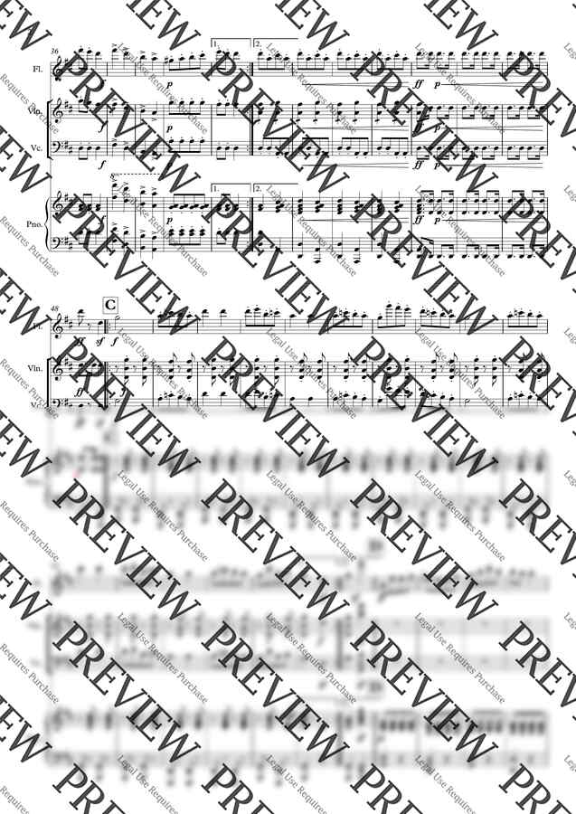 이를 피아노4중주 (플루트, 바이올린, 첼로, 피아노) 버전으로 편곡한 악보입니다.