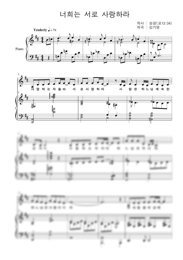 요청에 다라 F키 악보를 D키로 이조해드렸습니다.