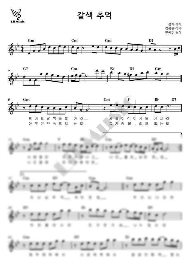 한혜진 - 갈색추억 / 멜로디 악보입니다.