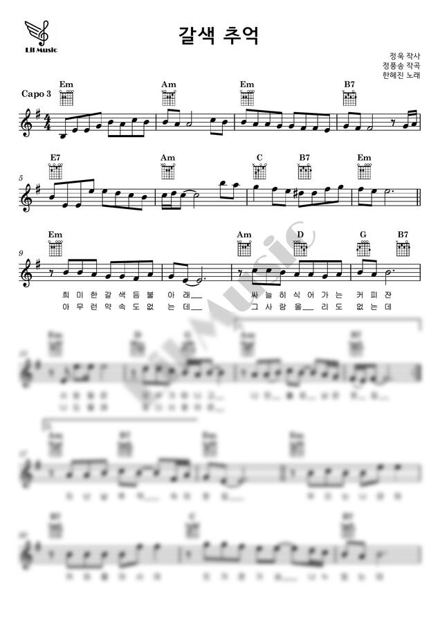 한혜진 - 갈색 추억 / 기타악보 (Capo3) by 릴뮤직