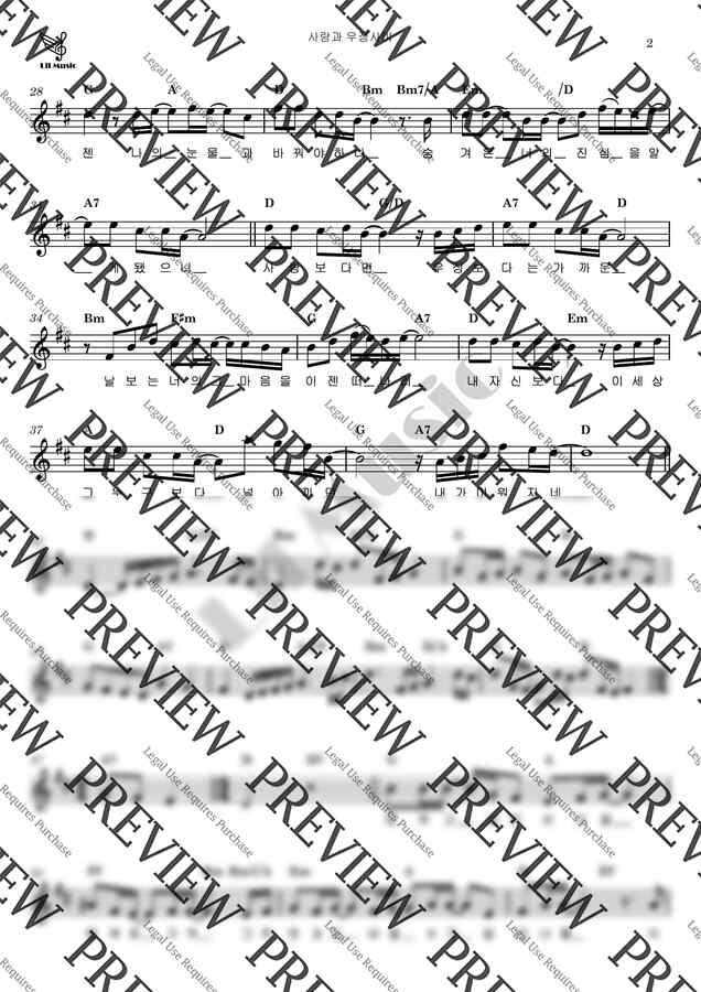 피노키오 - 사랑과 우정사이 / 멜로디악보 - 조옮김 (D key) 입니다