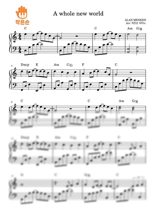 양탄자를 타고 하늘을 나는 듯한 이 신비롭고 아름다운 멜로디를 피아노로 직접 연주해 보세요! 원곡의 풍성한 느낌은 살리되, 작은손만의 편곡으로 손이 작거나 피아노가 처음인 분들도 매우 쉽게(very easy) 완곡하실 수 있도록 준비했습니다.