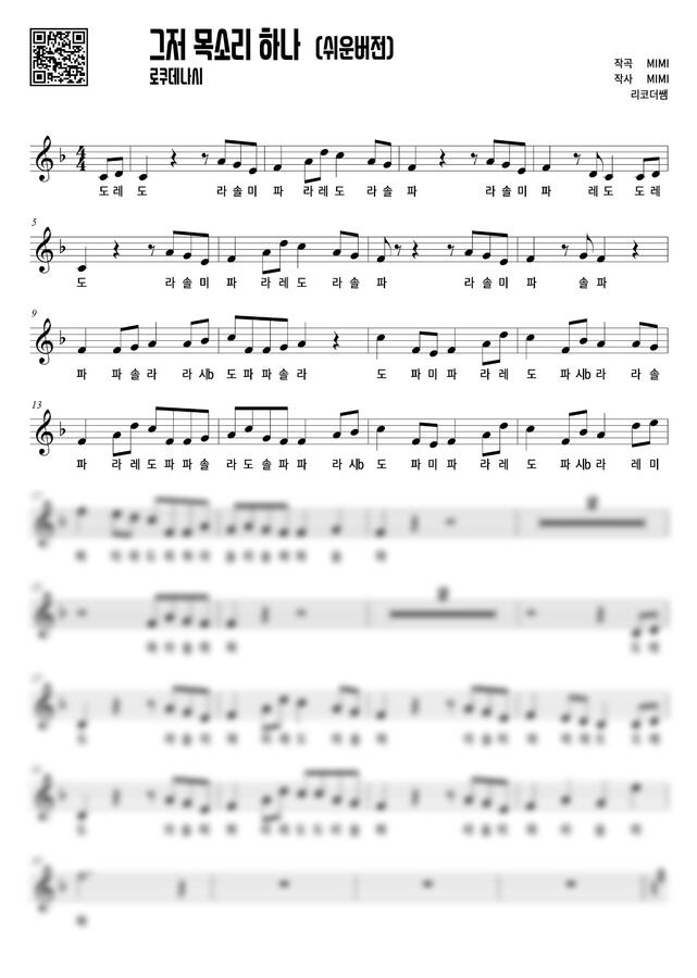 로쿠데나시 - 그저 목소리 하나 (계이름, 쉬운버전) by 리코더쌤