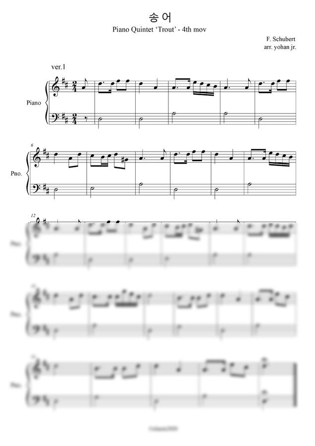 슈베르트의 '송어'를 쉽게 칠 수 있도록 편곡해보았습니다.
