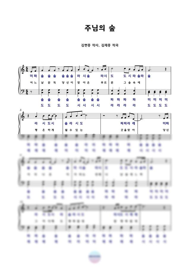 김현중,김재중 - 주님의 숲 (다장조 악보, 계이름 악보 포함) by MINI CCM PIANO