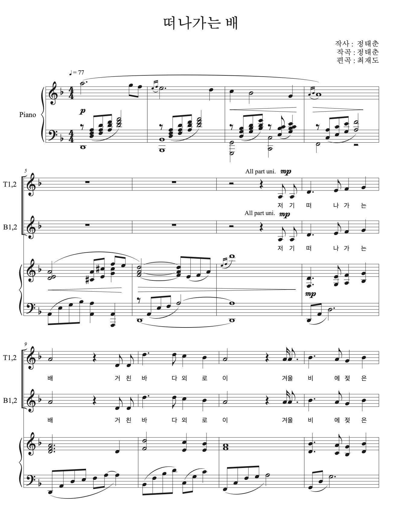 이 노래는 1980년대 초에 발표되었습니다. 그 시기는 전두환 정권 아래의 군사정권 시기였으며 5·18 이후 사회적 억압과 검열과 민주화 운동이 점점 확산되던 때 였습니다. 정태춘은 당시 대표적인 저항적 포크 가수로, 사회 현실을 은유적으로 표현하는 방식으로 메시지를 전달했습니다. 사회적 메세지와 시대 인식이 분명한 이 노래가 "당시 젊은 이들의 마음을 대변하지 않았나?"는 생각을 해봅니다. 전반적으로 합창 부분은 쉽게 편곡하여 누구나 쉽게 부를 수 있는 편성이라 생각 됩니다.