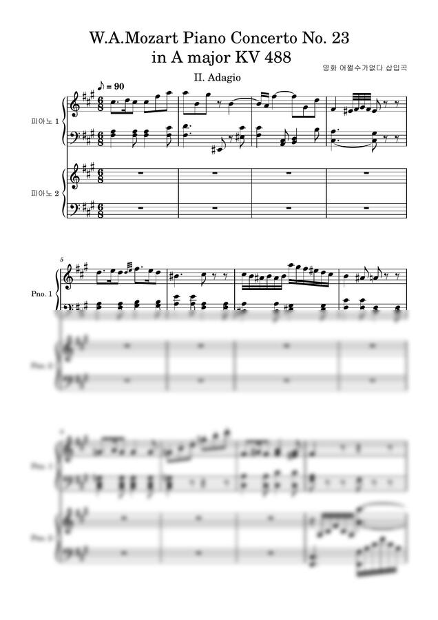 어쩔수가 없다 삽입곡 - 모차르트 피아노 협주곡 제23번 2악장 (원곡 버전/투피아노) by 피아노친당