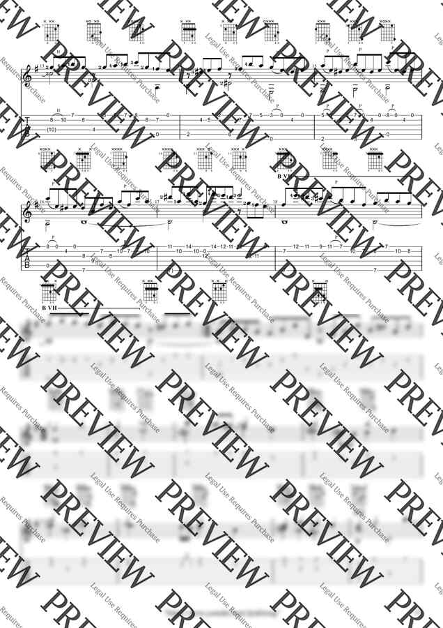 ⇀ 최대한 오선 노트와 타브를 함께 기재합니다.