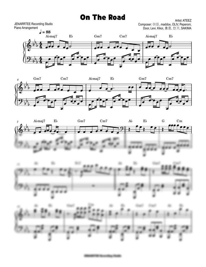 에이티즈 'On The Road' 피아노 악보.