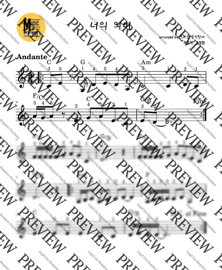 김창완 - 너의의미 (코드시니어악보-쉬움) by 음악천재