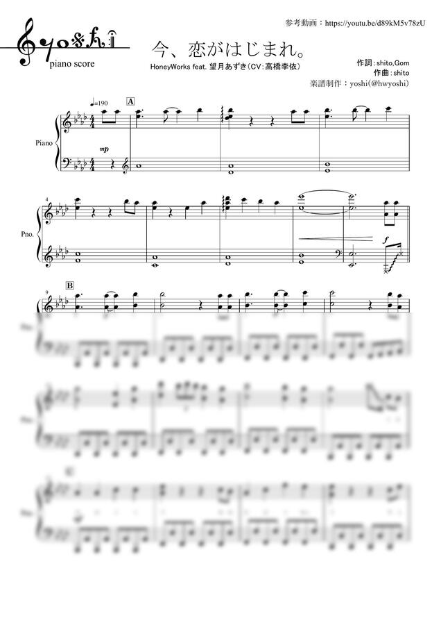 今回はHoneyWorksの『今、恋がはじまれ。feat.望月あずき(CV:高橋李依)』を採譜しました!