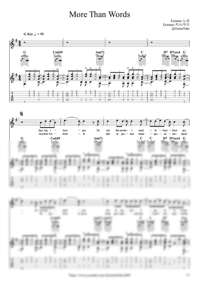 G Key / 6p/ 2단(노래+반주) / 5선(Staff) / 타브(TAB) / 가사(Lyrics) / 코드(Chords)