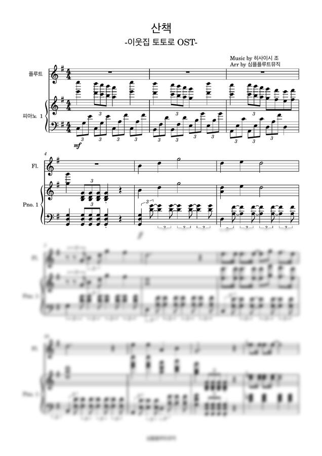 이웃집 토토로OST - 산책-[히사이시 조][플루트][피아노]