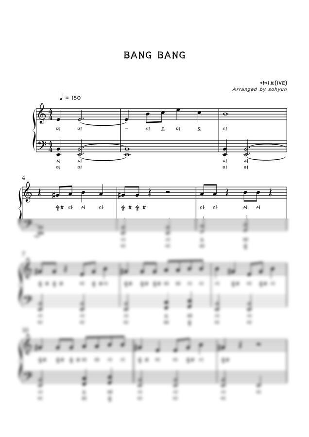 아이브(IVE) - 뱅뱅 (BANG BANG) (반복 많은 쉬운 악보 (계이름 악보)) by sohyun