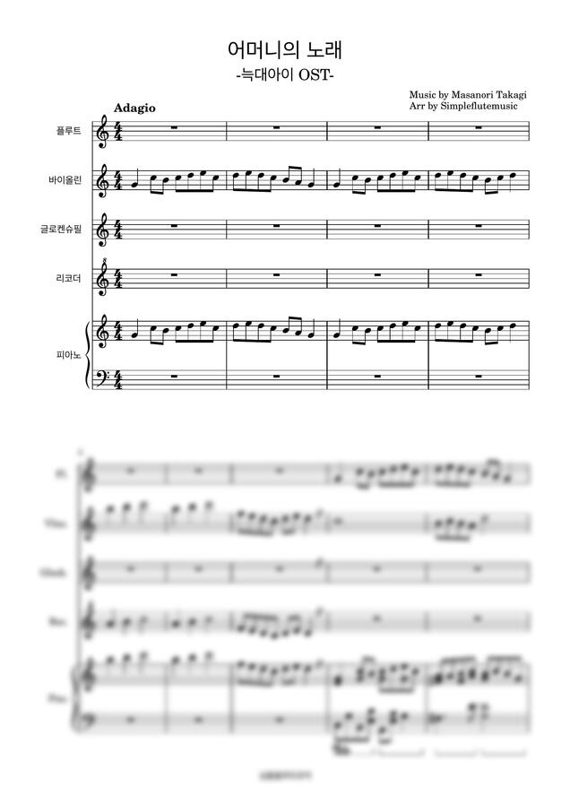늑대의 아이 OST - 어머니의 노래-[플루트][바이올린][리코더][피아노][발표회 연주곡]