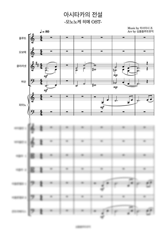 모노노케 히메 OST - 아시타카의 전설-[쉬운 오케스트라 악보][발표회 연주곡]0