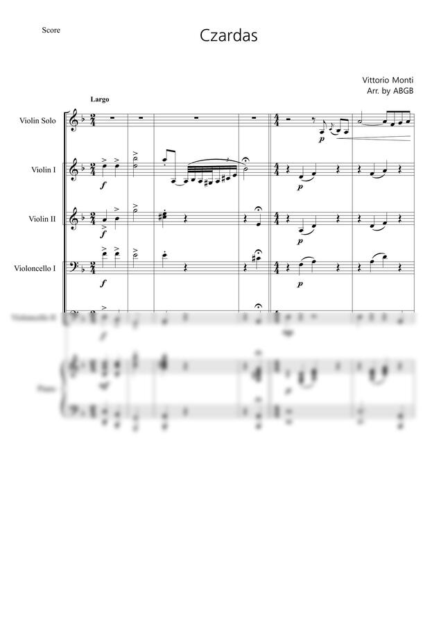 비토리오 몬티 - 차르다시 (바이올린 솔로 & 피아노 5중주 반주 악보) by 악보공방0