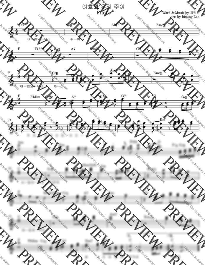 최덕신 <여호와 우리 주여> C key 3성합창을 위해 편곡된 플룻(1,2) 악보입니다.